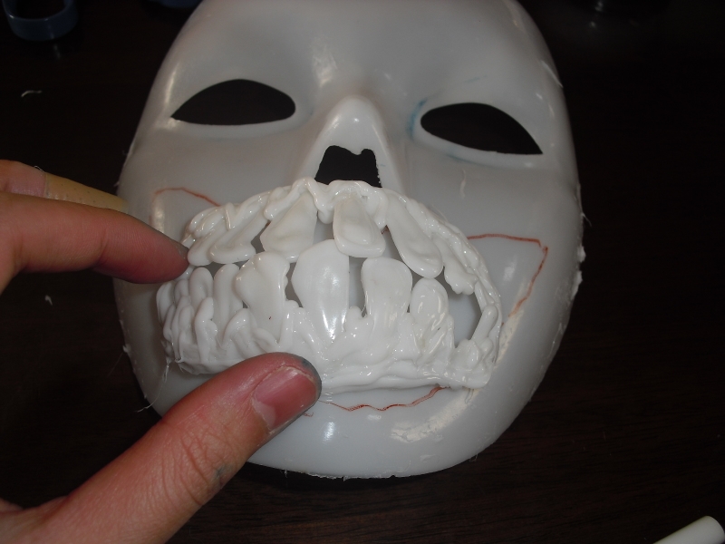 2016/04/09 Category : 未選択 ジョーカーマスクの簡単な作り方 『ジョーカーのマスク欲しい。』『北欧版のDOTF初版についてくるマスク、ちょっとな・・・』『簡単に作りたい・・・。けど材料とか揃えるの大変でしょう?』『1000円以内で作りたい・・・』できるんですよね、これが!!!( ´・∀・` )ドヤそう、グルーガンさえあればね!>>>>>>>>必読注意<<<<<<<<<安さと簡単さに重きを置きすぎたせいで、完成具合はチープの極みです。『それでもいい!パチモンでもいいから!!欲しい!!』という、志を低く見積もった人(失礼)向けのマスクのつくり方です。でも不思議、自分で作ると愛着わいちゃうんですよねヽ(*´∀`)ノ【必要なもの】・能面 (主にダイソーのパーティーグッスコーナーにあります)・グルーガン (ここ最近の大人気商品)・グルースティック(白が好ましいです。3箱は消費します)・革製の端切れ (手芸屋でも安価に売られています)・アクリル絵の具 (高校の美術の授業で余ったのがあればタダ)・ハンドクリーム (ママのを失敬すればタダ)・透明ニス (ご家庭にあるものを使えばタダ)・ガチャポン (ゴミ捨て場から拾ってくればタダ)・マッキー (その辺のを使えばタダ)・歯ブラシ ・絵筆 ・ハサミ 以上全て100均で揃います。【手順:顔】 ①あらかじめ能面全体にハンドクリームを塗りたくります。 塗らないと能面から固まったグルーガンを 上手に剥がすことが出来なくなります。②能面にマッキーで、口と目の部分にアタリ線を入れます。③その上から、グルーガンで大雑把になぞります。やけどに十分注意してください。 ④全体をグルーガンで埋めます。☆ポイント ・③で大雑把になぞったところを厚めになぞってください。 (皮の下に剥き出しの肉があるイメージでお願いします) ・皮膚の流れを意識しながらグルーガンで塗っていくとそれっぽくなります。 ・キッチリなぞるよりも、ノリノリでやると腐った皮膚っぽくなります。⑤全体的に塗り終わったら能面から剥がし、隙間を見つけたらまた グルーガンで埋めていってください。⑥ジョーカーといえば『顎』です。 能面の範囲では『顎』が足りません。 ので、能面からはがした後、顎を足してください。 地層をイメージしながらやると、上手にできるはずです。【手順:歯】 ①グルーガンで三角形を意識しながら大小様々な歯を作ります。 (気持ち大きめに作ると丁度良いです) (大きく作りすぎても、ハサミで調整できます) ②ガチャポンに、①の歯をそれっぽくくっつけていきます。 先端をライターで軽く炙ると、溶けて簡単にくっつけられるようになります。☆ポイント ・大きめの歯4本を前歯にすると遠近感が出ます。③歯の間をグルーガンで埋めていきます。 ④ある程度埋まったら、ガチャポンから剥がします。☆ポイント ・ガチャポンからはがした時、歯と歯をガチャらせると最悪な歯並びになります。 そうすることによって歯の大きさの不揃いさが隠れます。 でもDOTFジョーカーの歯並びは綺麗。 ・・・目をつむりましょう。(-ω-*) ⑤④を能面に乗せ、足りない部分を埋めていけば、完成です。 ☆ポイント ・色を塗る前にマスクを顔に被せてみてください。 おそらく顔にフィットしないと思います。 その場合は、適当な紐でお面をチャーシューのように ギュッと巻いて1~2日放置してください。 (強めに縛ってもやわらかいので壊れません) お面が内側に丸まって、顔のサイズに合うようになります。 【塗装:顔】 ①全体的に白く塗ったら、ピンク色(肉部分)を塗ります。②全体に塗り終わったら、仕上げに口紅(真っ赤なアクリル)を塗ってください。☆ポイント ・ジョーカーの皮膚は腐っています。なので、白を塗り終わったら 青・緑・赤を混ぜた白をランダムに塗ってみてください。 油絵具の要領で、一発で塗り終わらせるのではなく、 納得いくまで塗り重ねていってください。 ③最後に、赤・青などの絵の具を歯ブラシに塗って吹きかければ完成です。【塗装:歯】 ①顔と同じように、べっちょべちょに塗ってください。 黄ばんだ歯って気持ち悪い!好き!!完成ワーイヽ(゚∀゚)メ(゚∀゚)メ(゚∀゚)ノワーイ完成塗装が完全に乾いたらニスを塗って完成です。グルーガンは柔らかいので、カッターなどで簡単に切り込みを入れることができます。今回顔に付けるためのベルトや口周りの針金などの作業工程は省きましたが、その気になれば付け加えることができます。以上が自己流のジョーカーマスクの作り方です。こればかりが正しい作り方ではありません。是非、みなさんで作り方を試行錯誤しながら素敵なマスクを作っていってくださいヽ(*´∀`)ノ(この記事を見て作ったよ~、という報告大歓迎です(´∀`*)) [0回]PR Comment0 Comment Comment Form お名前name タイトルtitle メールアドレスmail address URLurl コメントcomment パスワードpassword